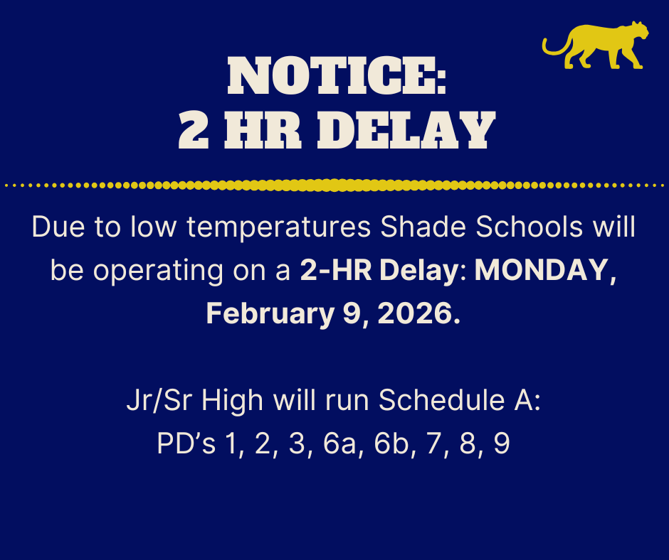 2-Hour Delay: MONDAY, February 9, 2026