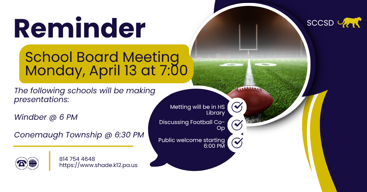 Football Co-Op and School Board Meeting - Monday, April 13